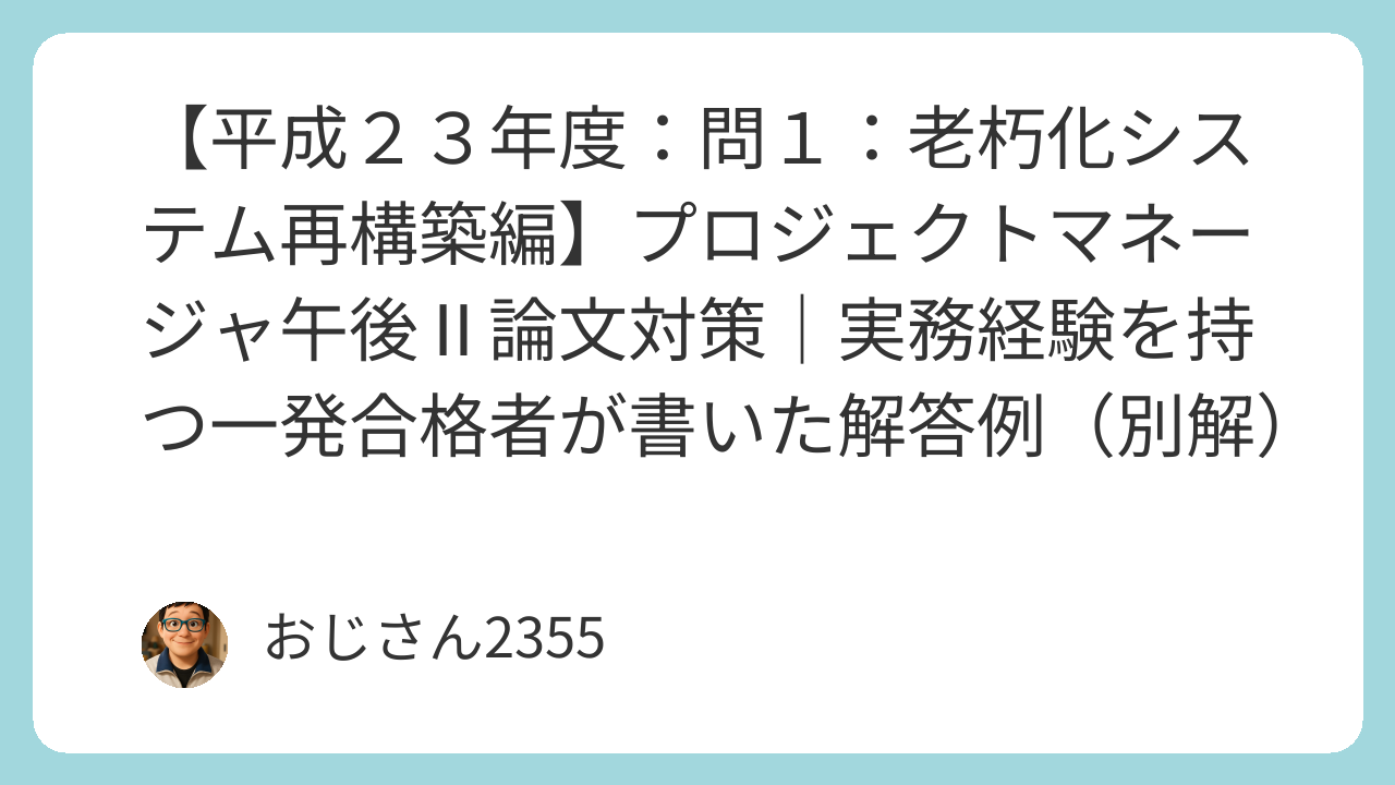 【平成23年度:問1:老朽化システム再構築編】プロジェクトマネージャ午後Ⅱ論文対策|実務経験を持つ一発合格者が書いた解答例
