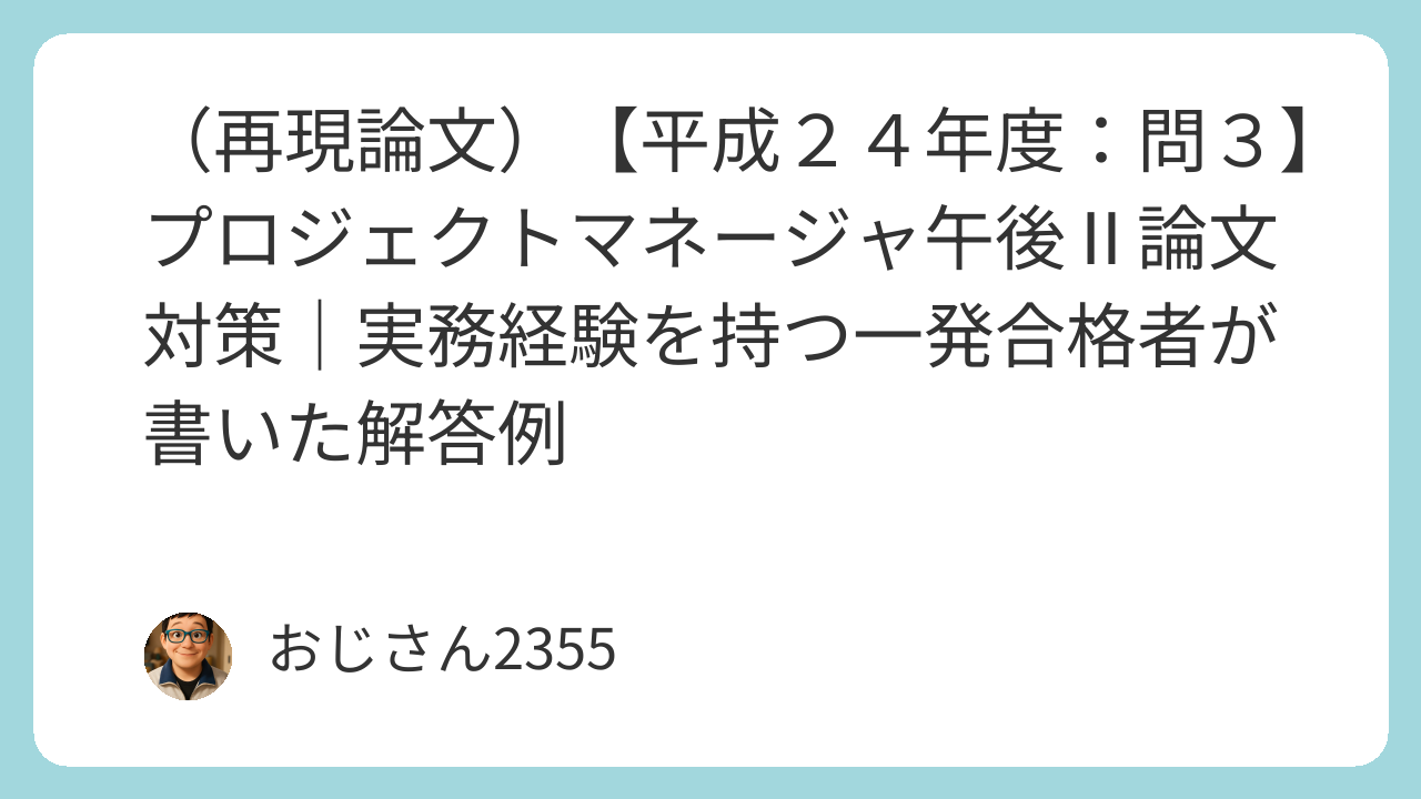 プロジェクトマネージャ試験の午後Ⅱで、自分が実際に解答した内容を再現したもの紹介します。小論文のネタ探しや午後Ⅱ対策の参考にしてもらえるとうれしいです。