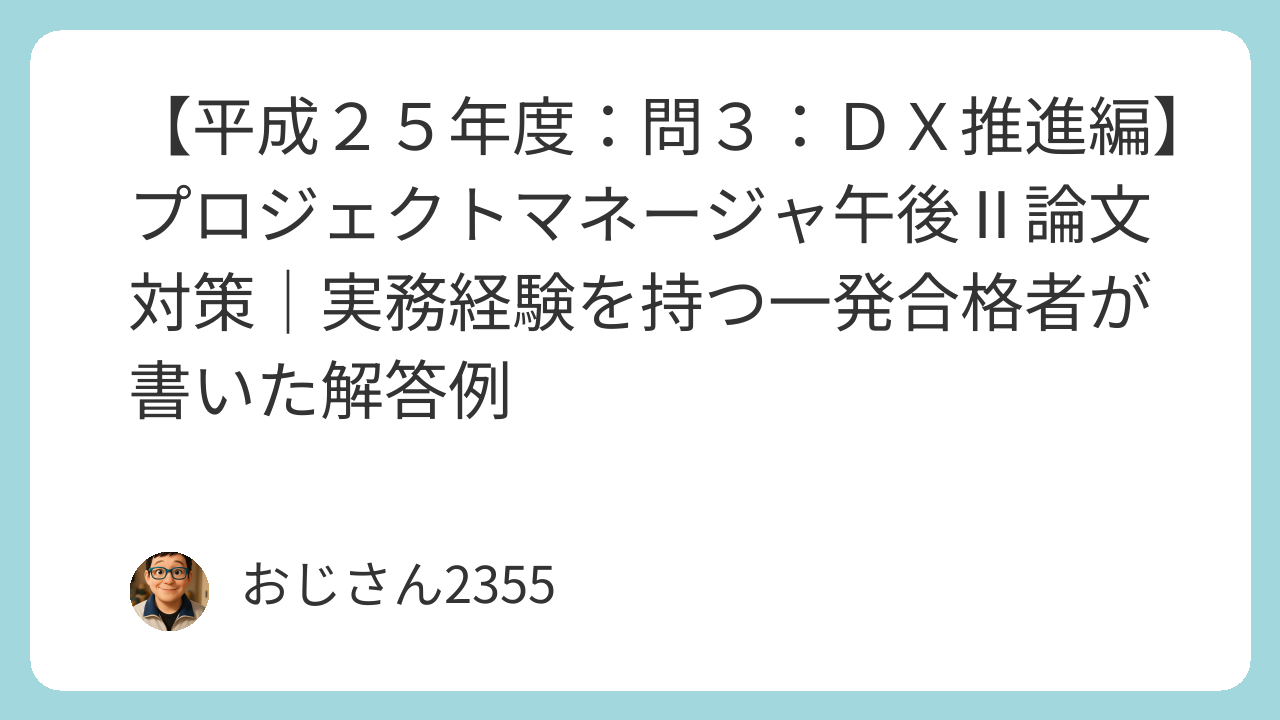 プロジェクトマネージャ試験の午後Ⅱの小論文を作成してみました。小論文のネタ探しや午後Ⅱ対策の参考にしてもらえるとうれしいです。