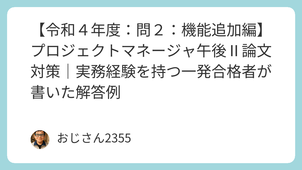 プロジェクトマネージャ試験の午後Ⅱの小論文を作成してみました。小論文のネタ探しや午後Ⅱ対策の参考にしてもらえるとうれしいです。