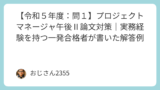 プロジェクトマネージャ試験の午後Ⅱの小論文を作成してみました。小論文のネタ探しや午後Ⅱ対策の参考にしてもらえるとうれしいです。