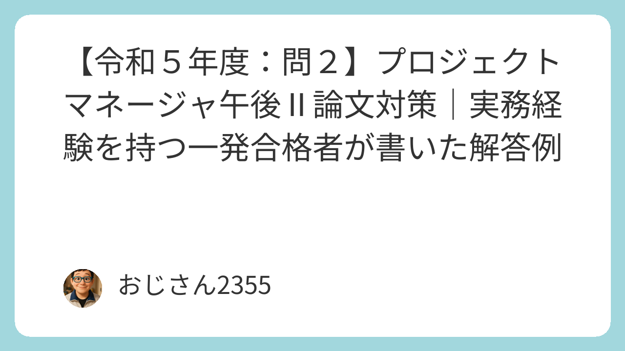 プロジェクトマネージャ試験の午後Ⅱの小論文を作成してみました。小論文のネタ探しや午後Ⅱ対策の参考にしてもらえるとうれしいです。