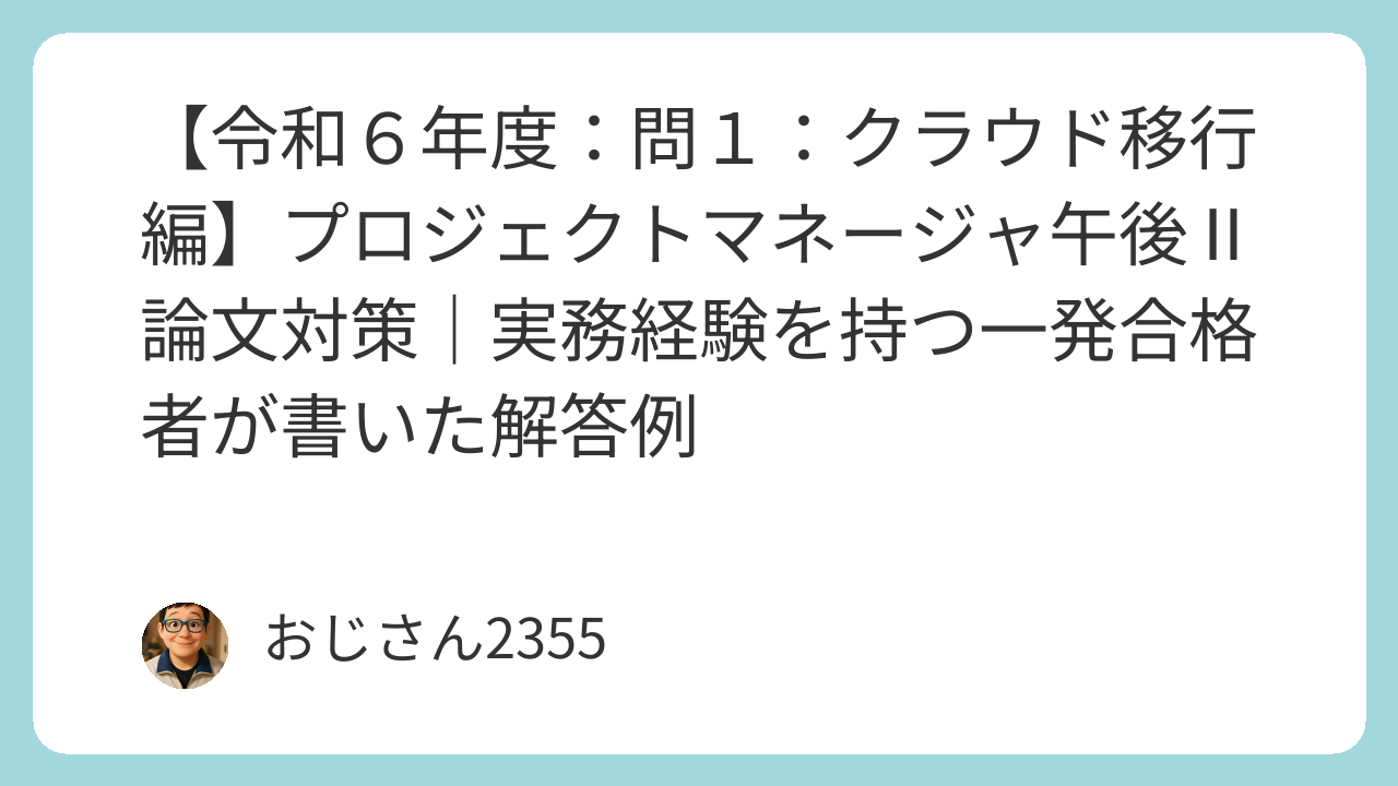 【令和6年度:問1:クラウド移行編】プロジェクトマネージャ午後Ⅱ論文対策|実務経験を持つ一発合格者が書いた解答例