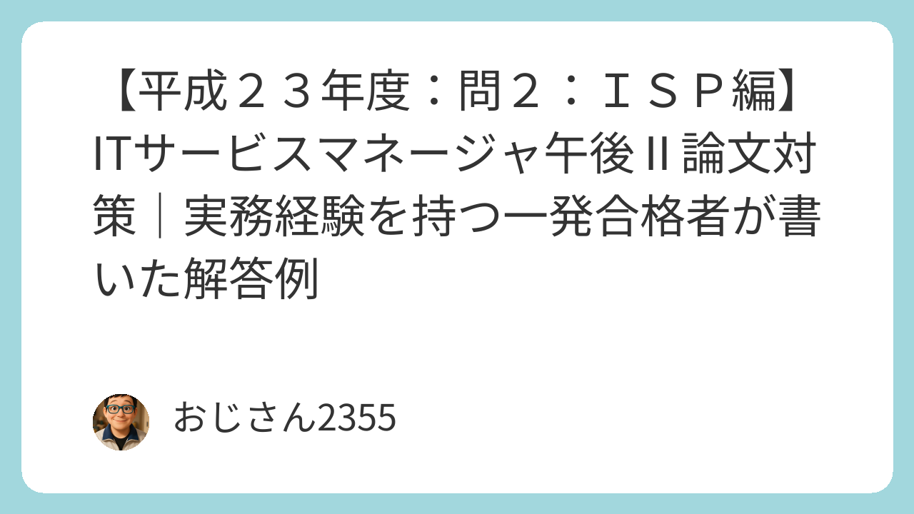ITサービスマネージャ試験の午後Ⅱの対策として、自分が実際に練習用に作成した小論文を紹介します。小論文のネタ探しや午後Ⅱ対策の参考にしてもらえるとうれしいです。