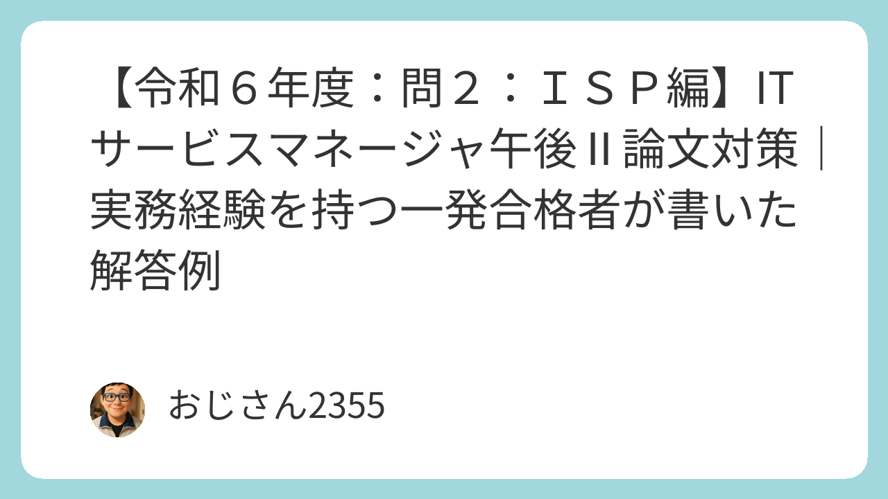 ITサービスマネージャ試験の午後Ⅱの小論文を作成してみました。小論文のネタ探しや午後Ⅱ対策の参考にしてもらえるとうれしいです。