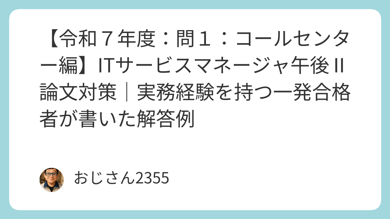 ITサービスマネージャ試験の午後Ⅱの小論文を作成してみました。小論文のネタ探しや午後Ⅱ対策の参考にしてもらえるとうれしいです。