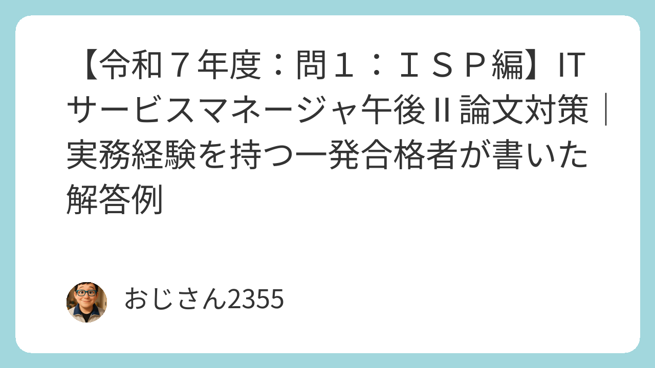 【令和7年度:問1:ISP編】ITサービスマネージャ午後Ⅱ論文対策|実務経験を持つ一発合格者が書いた解答例