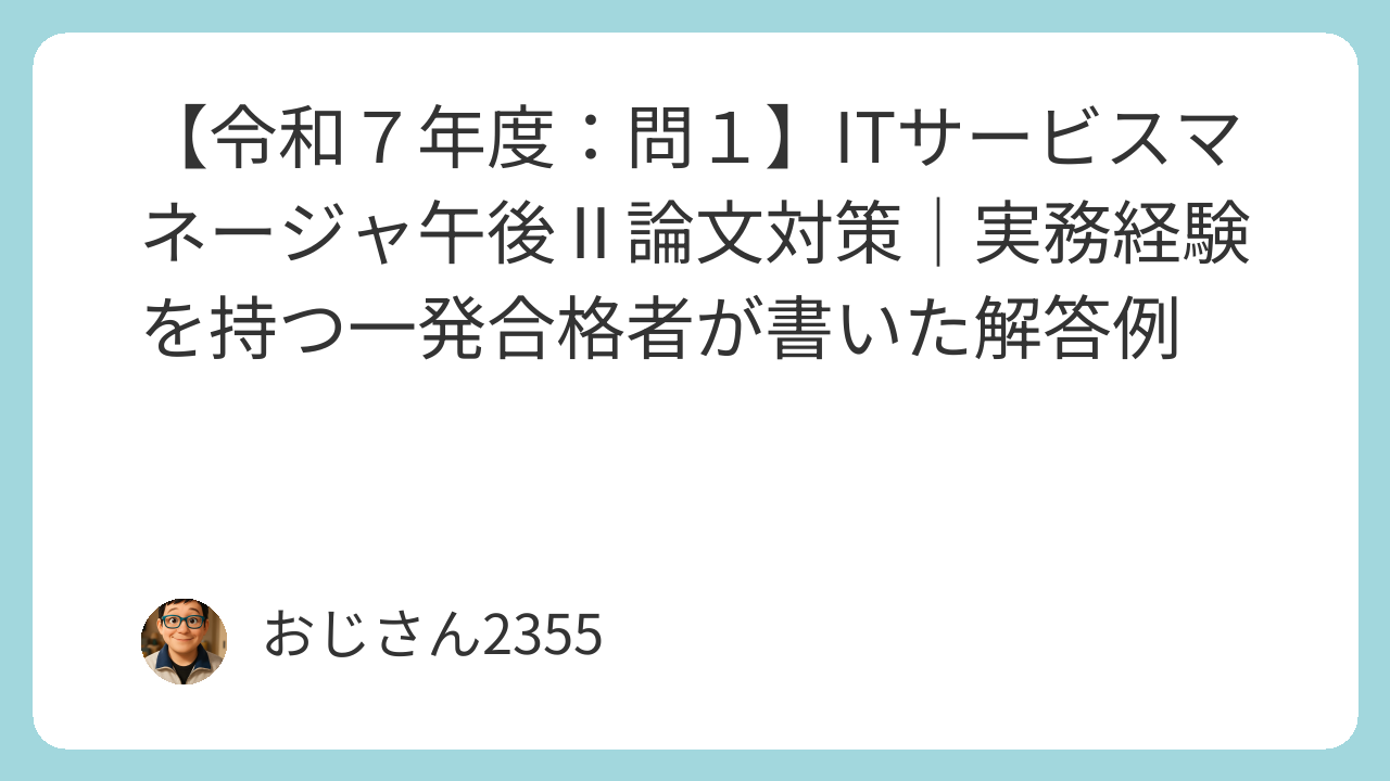 ITサービスマネージャ試験の午後Ⅱの小論文を作成してみました。小論文のネタ探しや午後Ⅱ対策の参考にしてもらえるとうれしいです。