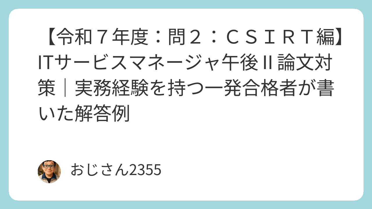 【令和7年度:問2:CSIRT編】ITサービスマネージャ午後Ⅱ論文対策|実務経験を持つ一発合格者が書いた解答例